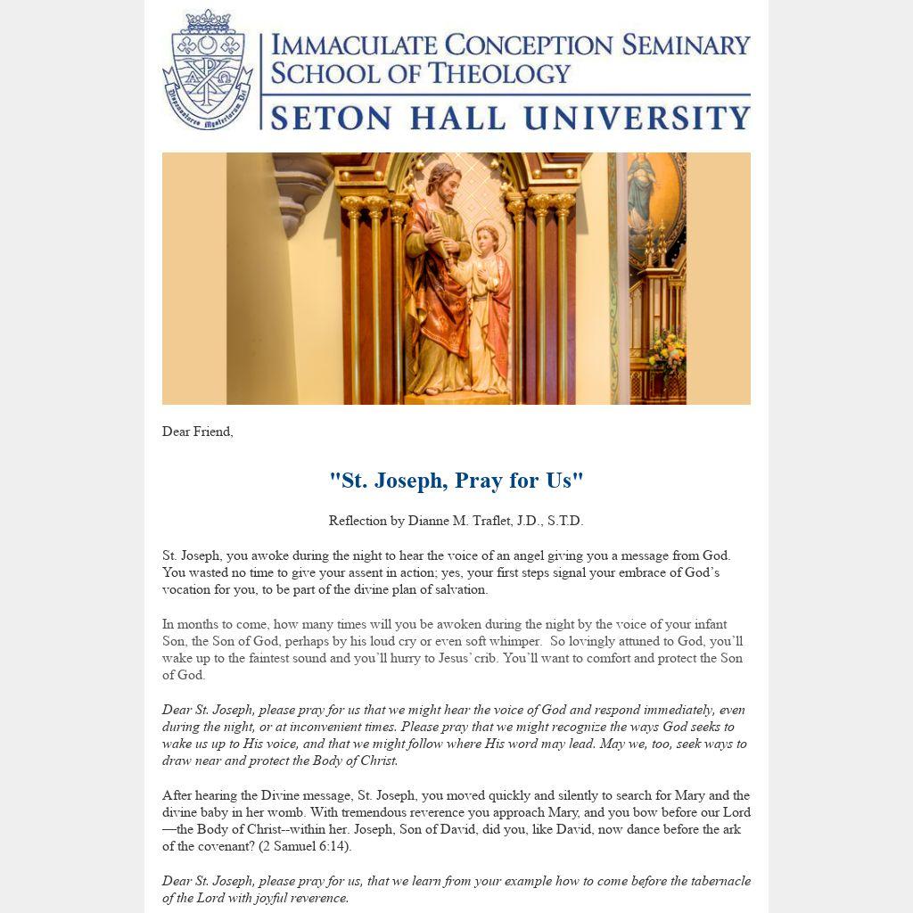 Loving Lord, help us to imitate St. Joseph that we, too, may hear Your voice, and walk with You in faith and love. You are the “living bread come down from heaven” (Jn. 6:51); may we appreciate and reverence the gift of Your hidden life in the tabernacle, as Joseph reverenced Your hidden life in Mary. Amen.