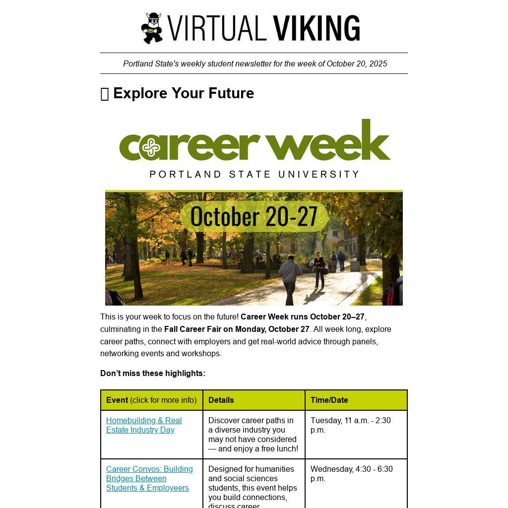 Portland State's weekly student newsletter for the week of October 20, 2025