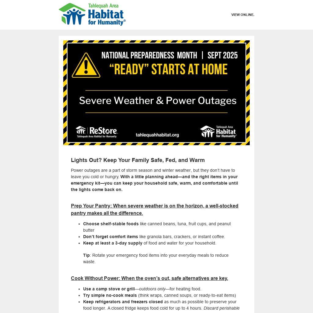 Weather reports give us a heads-up—our job is to prepare before the storm hits. By stocking your pantry, planning safe cooking methods, and knowing how to stay warm, you can turn a power outage into an inconvenience instead of an emergency