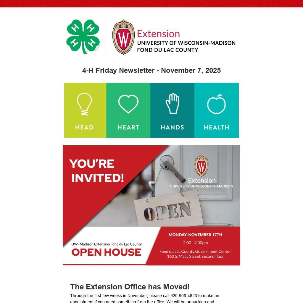 Extension Office Open House - Nov 17, 2-4pm, FdL County Government Center, 160 South Macy St, 2nd floor
