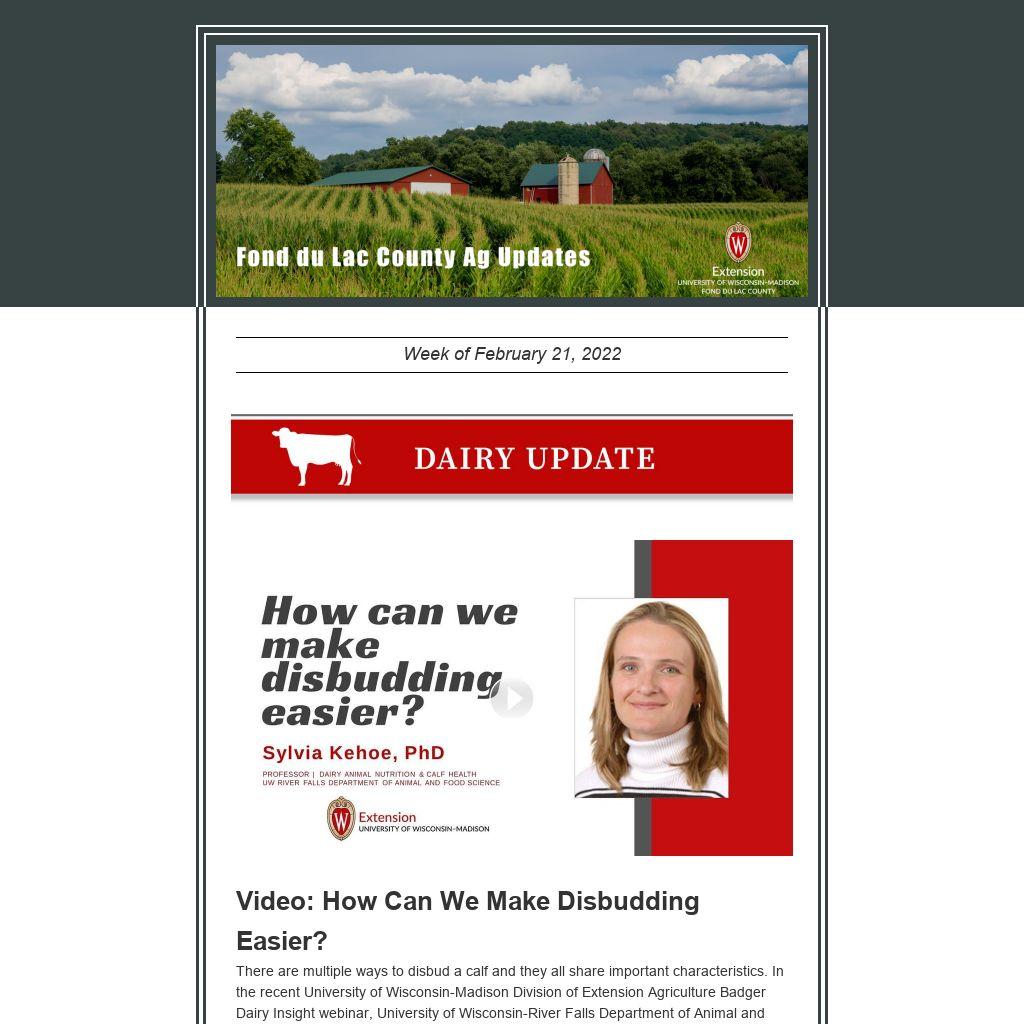 There are multiple ways to disbud a calf and they all share important characteristics. In the recent University of Wisconsin-Madison Division of Extension Agriculture Badger Dairy Insight webinar, University of Wisconsin-River Falls Department of Animal and Food Science Professor Sylvia Kehoe reviews the advantages and disadvantages of different disbudding methods and the ways we can make this an easy, safe, and effective process for both calves and employees.
