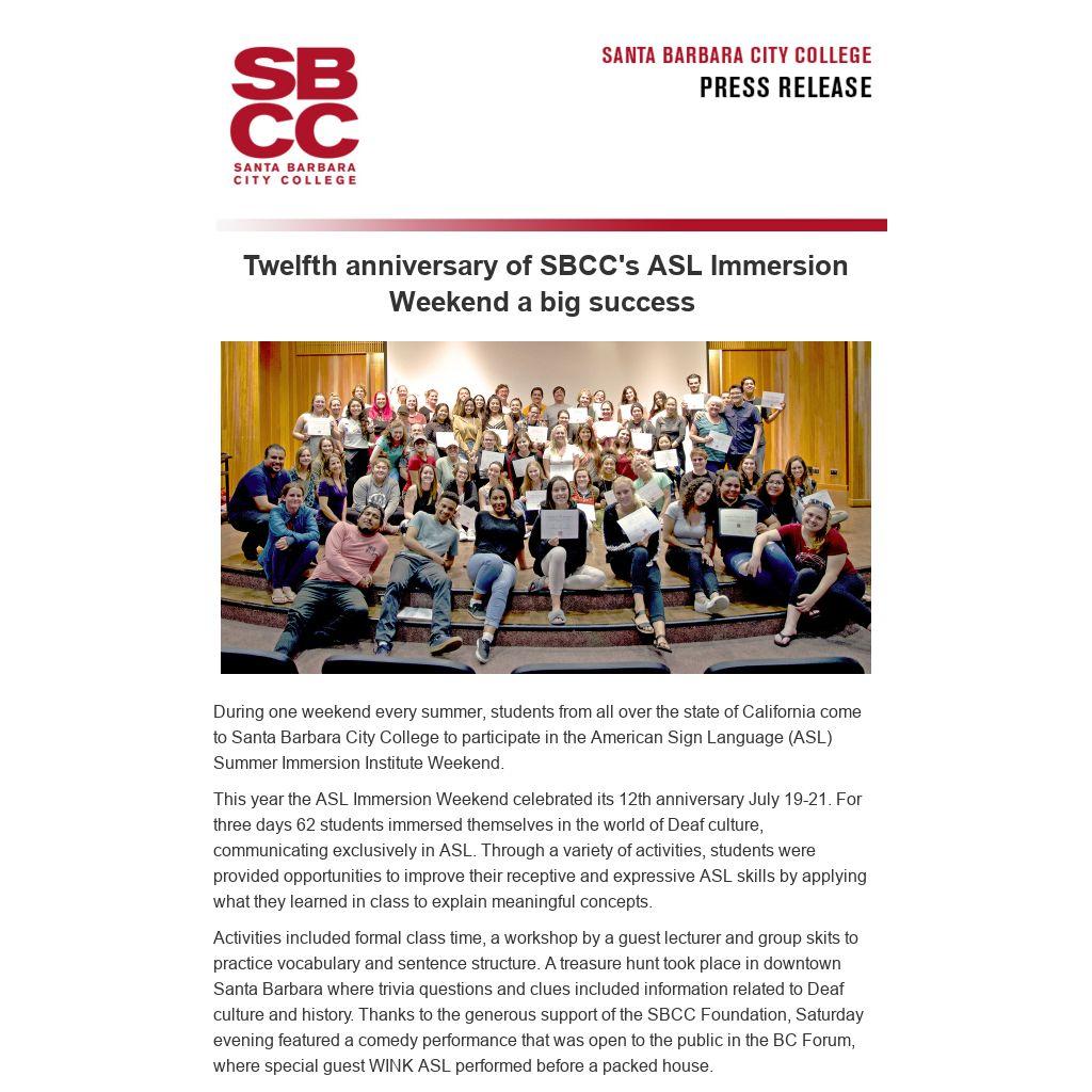 During one weekend every summer, students from all over the state of California come to Santa Barbara City College to participate in the American Sign Language (ASL) Summer Immersion Institute Weekend.