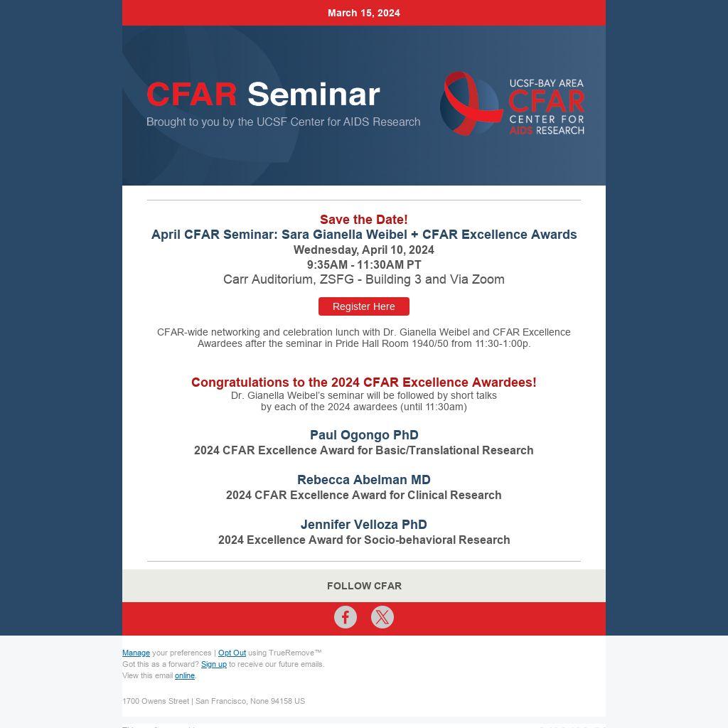 Congratulations to the 2024 CFAR Excellence Awardees!