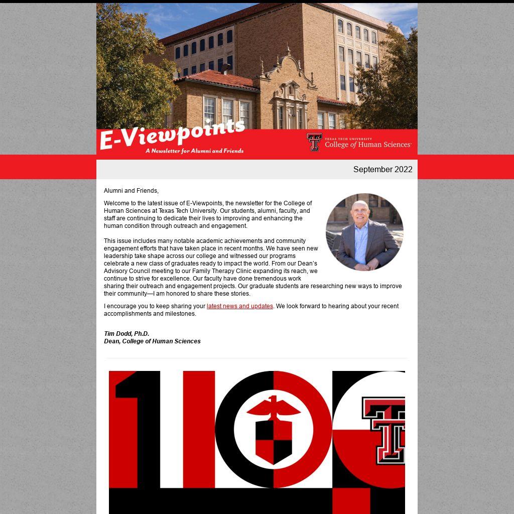 Born as Texas Technological College, Texas Tech University has never stopped aspiring to think big, to think in worldwide terms. It is from such drive that a small college founded in 1923 in the vast spaces of West Texas has become an extraordinary 21st-century engine of educational, research, cultural, economic, and athletic opportunity. In our first 100 years, Texas Tech has become a potent force for learning and discovery in areas critical to humanity in the 21st century. As one of the four original colleges on campus, Human Sciences is honored to celebrate our impactful history, and we look forward to the next 100 years. Join us as the celebration kicks off this December.