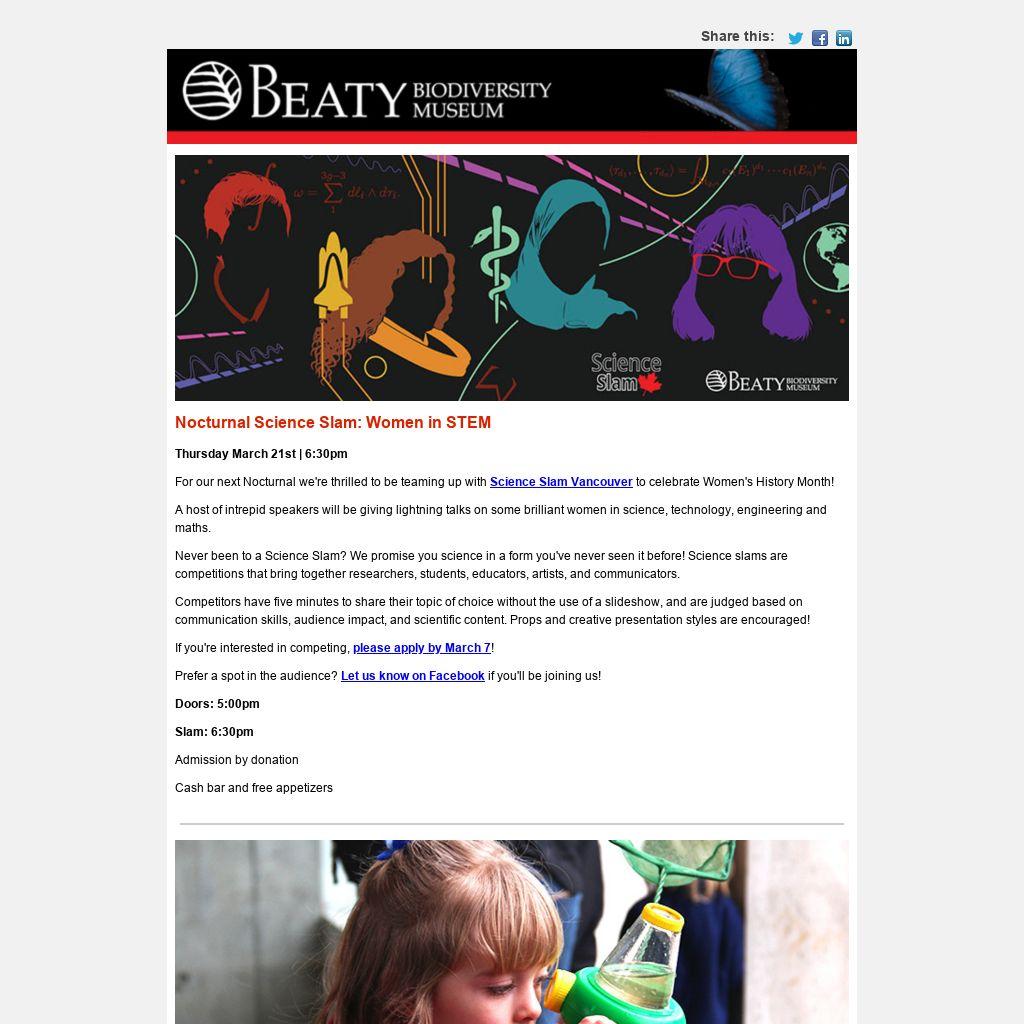 Have suggestions for our website? Please let us know! If there's something that you think is in the wrong place on our website or if you can't find the content you're looking for, please email beaty.marketing@ubc.ca with your feedback.
