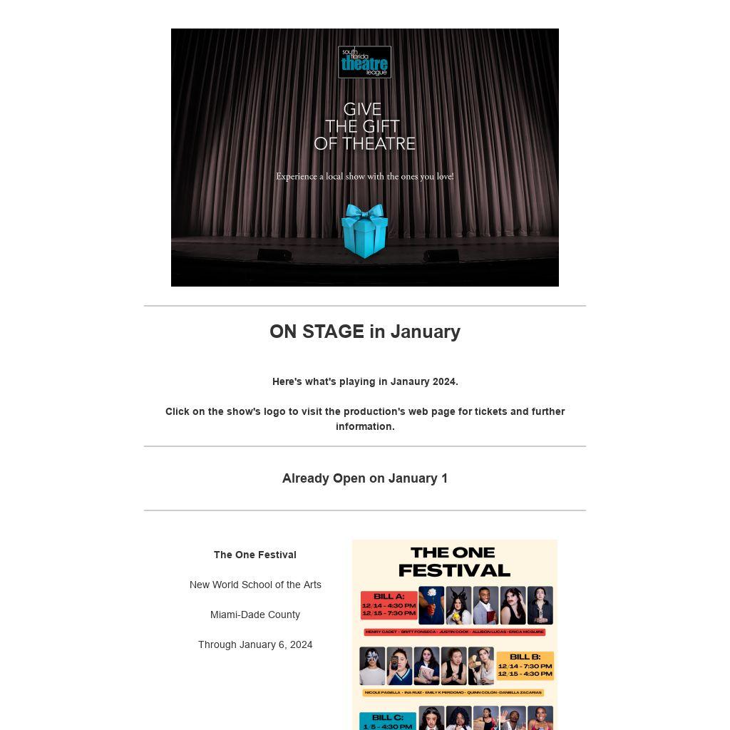 This email blast and other programs of the South Florida Theatre League are made possible with the support of Miami-Dade County Department of Cultural Affairs and the Cultural Affairs Council, the Miami-Dade County Mayor and Board of County Commissioners.