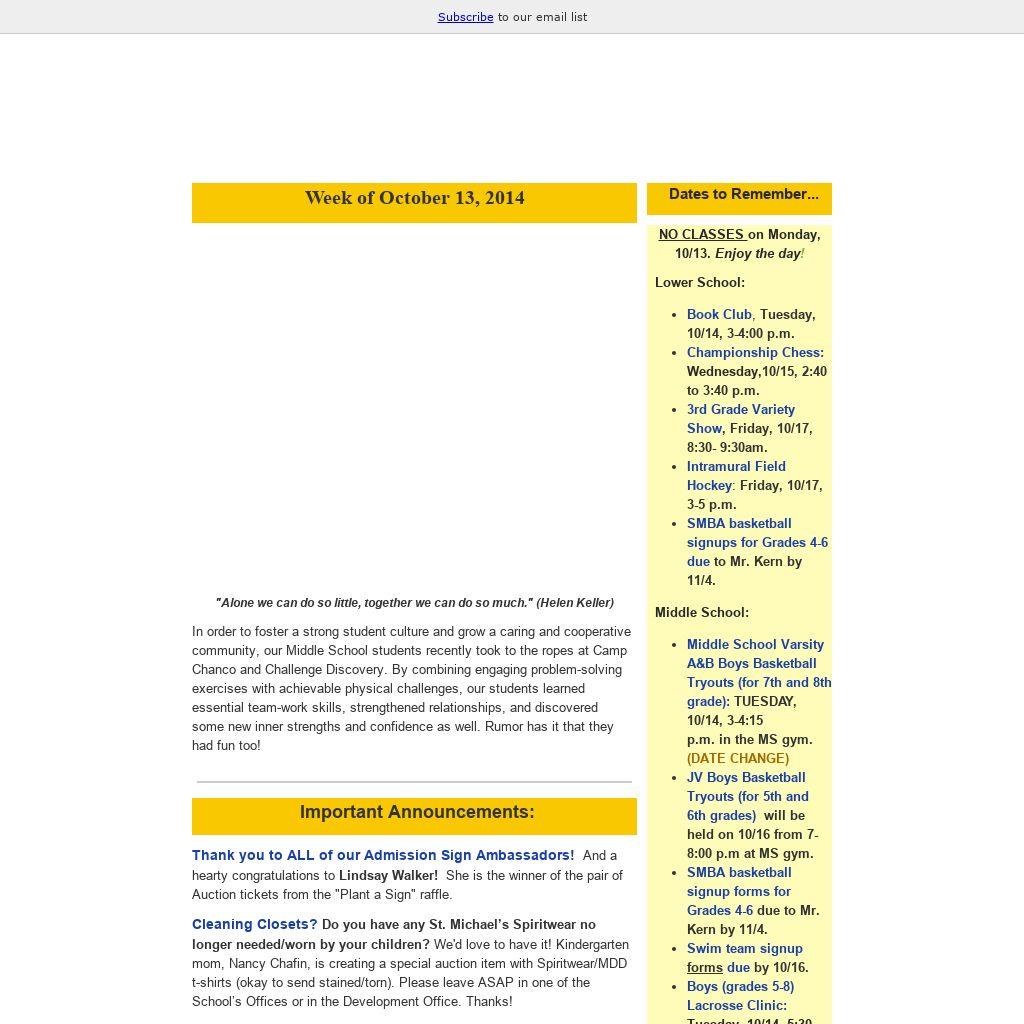 Current and past issues of "This Week at St. Michael's" are now archived on our website under "News and Events."