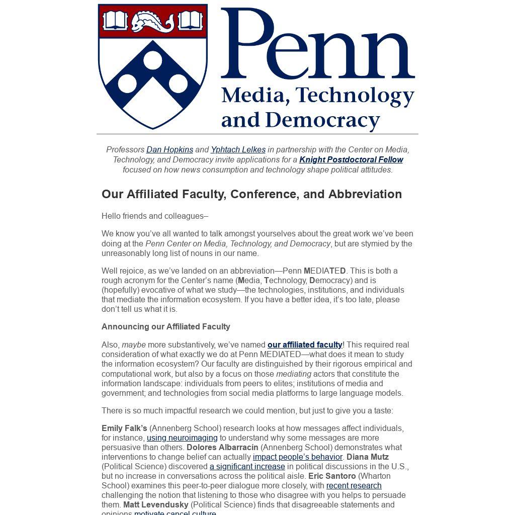 We have launched (in beta) a research compendium which curates and translates University of Pennsylvania research on the quantitative study of the information ecosystem and its impact on democracy. It brings together empirical work (so far, roughly 20 papers) examining issues such as information integrity, media ecosystems, political speech, and democratic resilience, with the aim of making rigorous academic research more accessible and actionable.