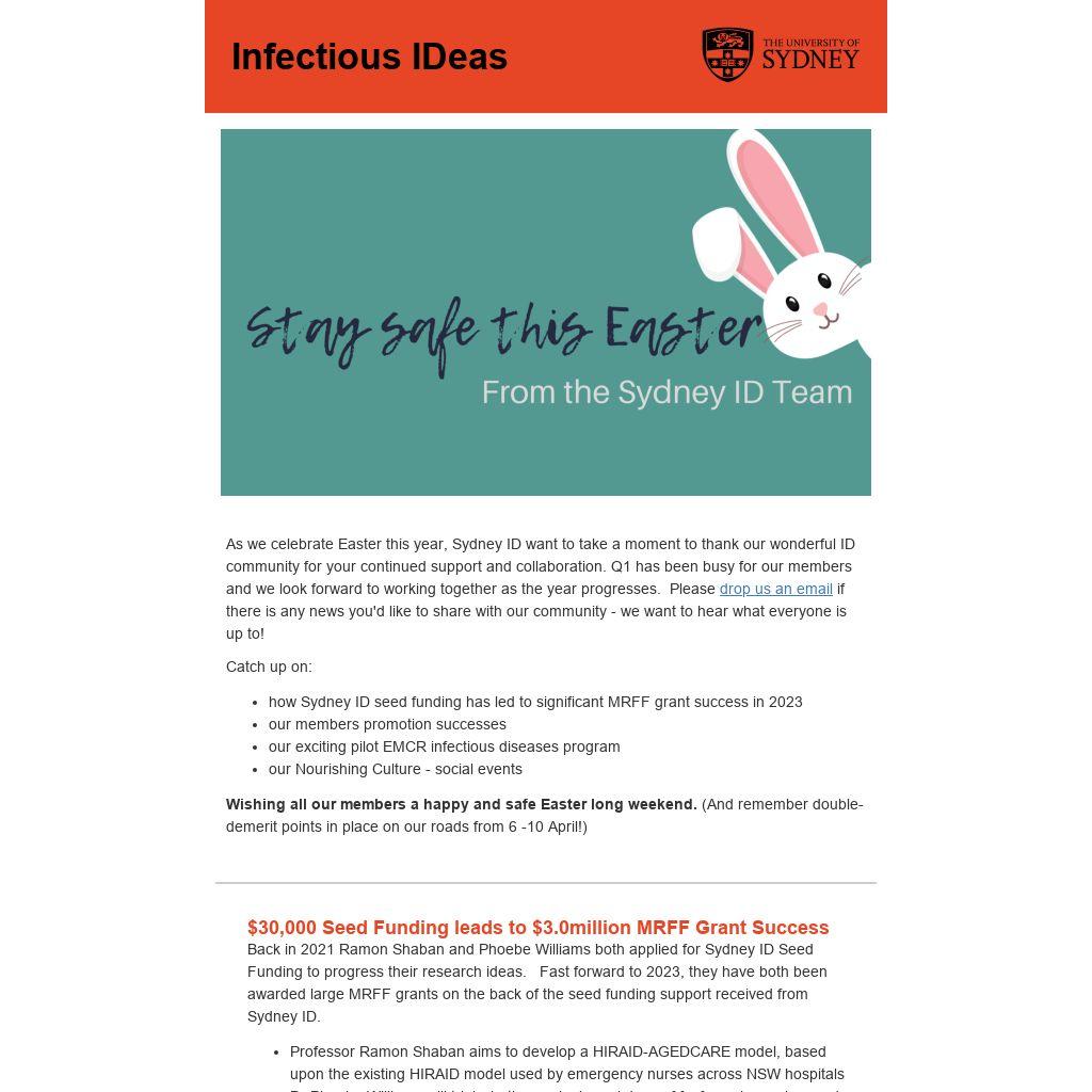 "this MRFF success was all only possible thanks to the support of the Sydney ID seed funding. I enormously appreciate your support when the idea first arose, which enabled the study to gain traction and this successful grant application. Thank you so much to all of you at Sydney ID that are so supportive of EMCRs, particularly Ben (Marais) who has provided guidance, advice and mentorship for many years."