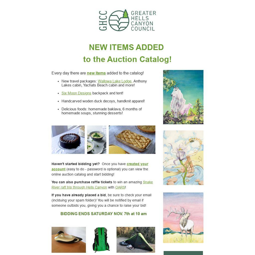 Haven't started bidding yet?  Once you have created your account (easy to do - password is optional) you can view the online auction catalog and start bidding!