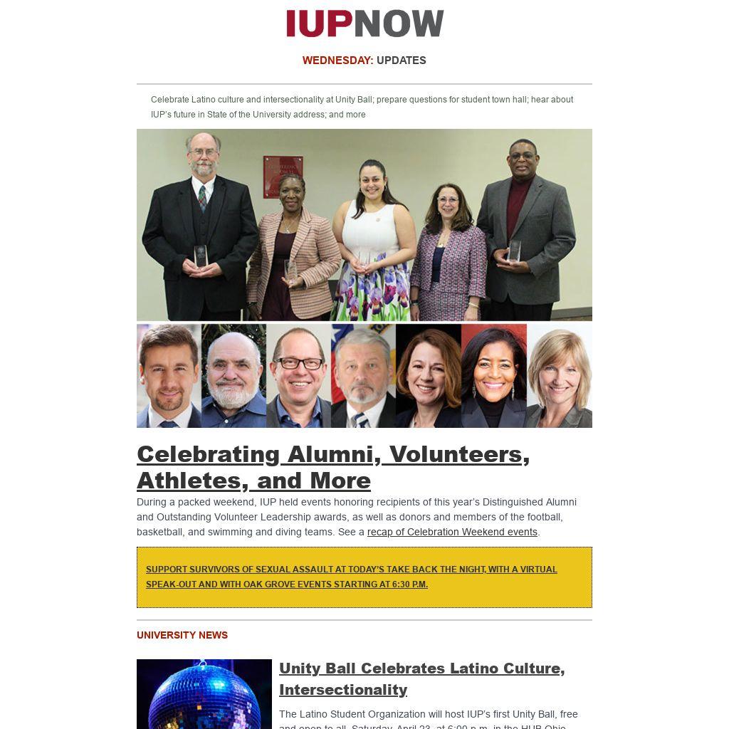 The Latino Student Organization will host IUP’s first Unity Ball, free and open to all, Saturday, April 23, at 6:00 p.m. in the HUB Ohio Room. Celebrating culture and inclusivity, the event will feature dancing, refreshments, and speaker Norman Bristol Colón, chief diversity officer at Pennsylvania’s Department of Community and Economic Development.