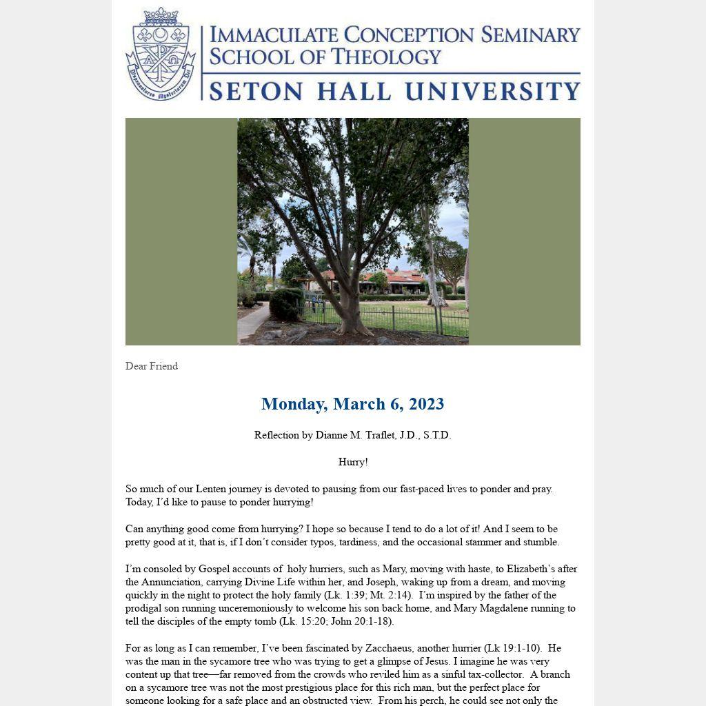 So much of our Lenten journey is devoted to pausing from our fast-paced lives to ponder and pray. Today, I’d like to pause to ponder hurrying!