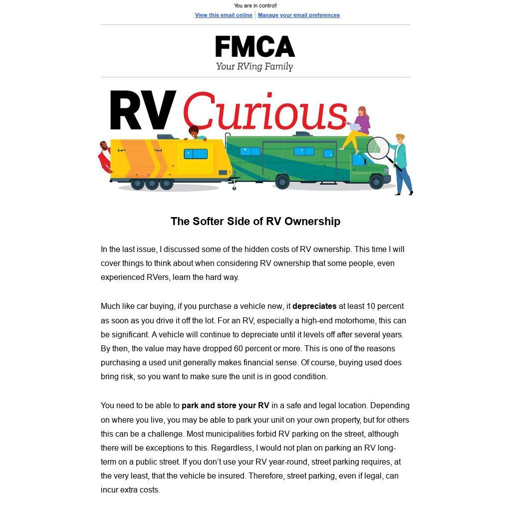 In the last issue, I discussed some of the hidden costs of RV ownership. This time I will cover things to think about when considering RV ownership that some people, even experienced RVers, learn the hard way.