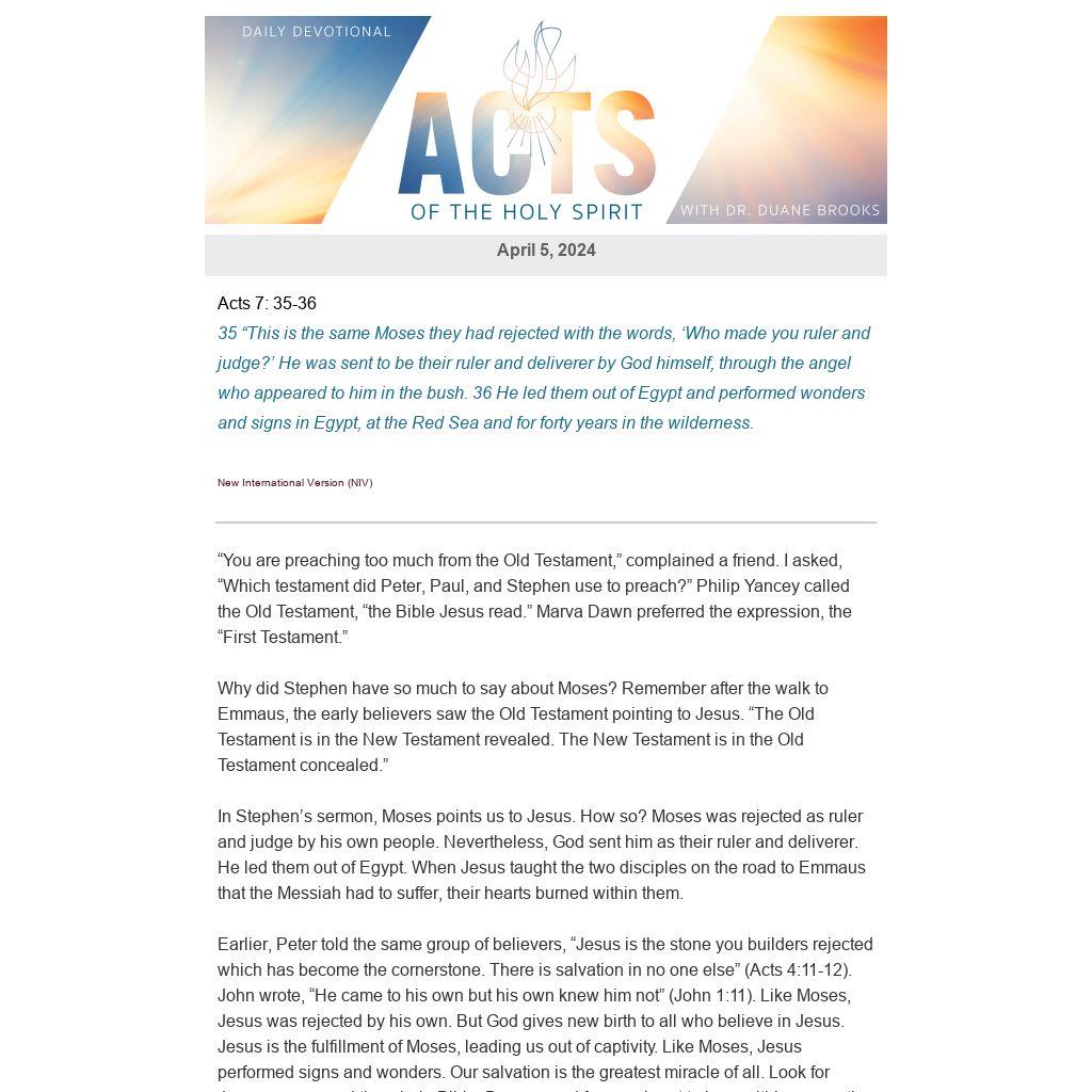 In Stephen’s sermon, Moses points us to Jesus. How so? Moses was rejected as ruler and judge by his own people. Nevertheless, God sent him as their ruler and deliverer. He led them out of Egypt. When Jesus taught the two disciples on the road to Emmaus that the Messiah had to suffer, their hearts burned within them.