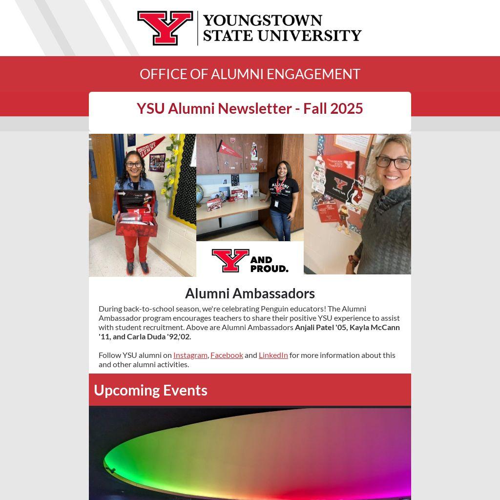 Keep an eye out for an exclusive YSU Homecoming e-newsletter