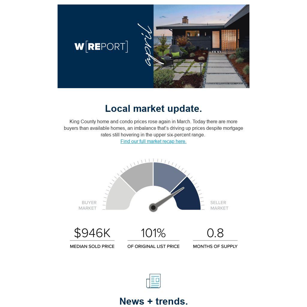 King County home and condo prices rose again in March. Today there are more buyers than available homes, an imbalance that’s driving up prices despite mortgage rates still hovering in the upper six-percent range. Find our full market recap here.