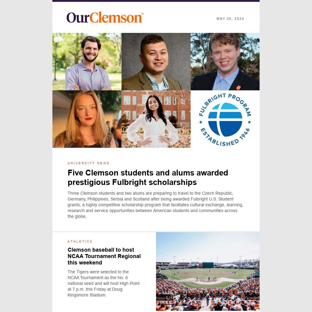 OUR Clemson delivered on Wednesdays starting June 5 |