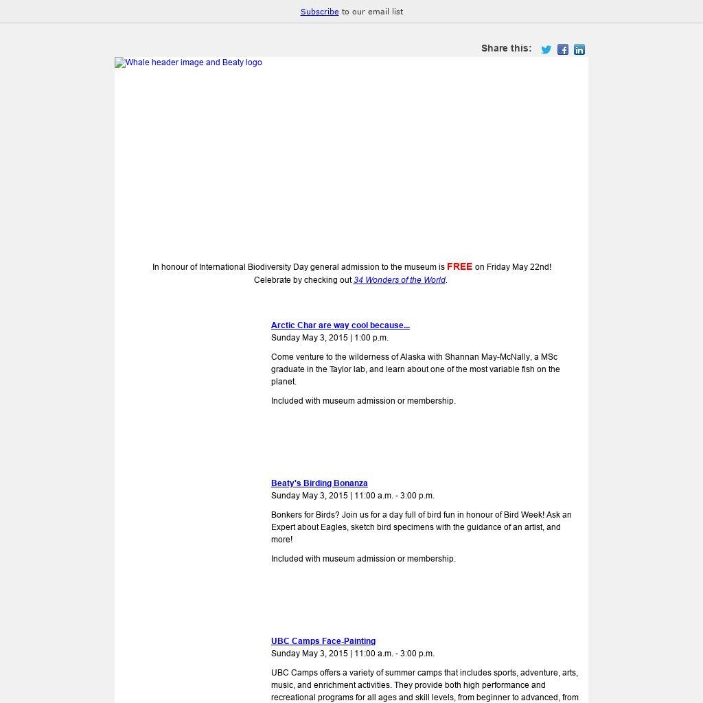 | In honour of International Biodiversity Day general admission to the museum is FREE on Friday May 22nd!