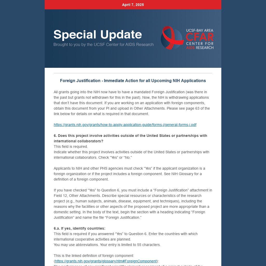 Foreign Justification - Immediate Action for all Upcoming NIH Applications