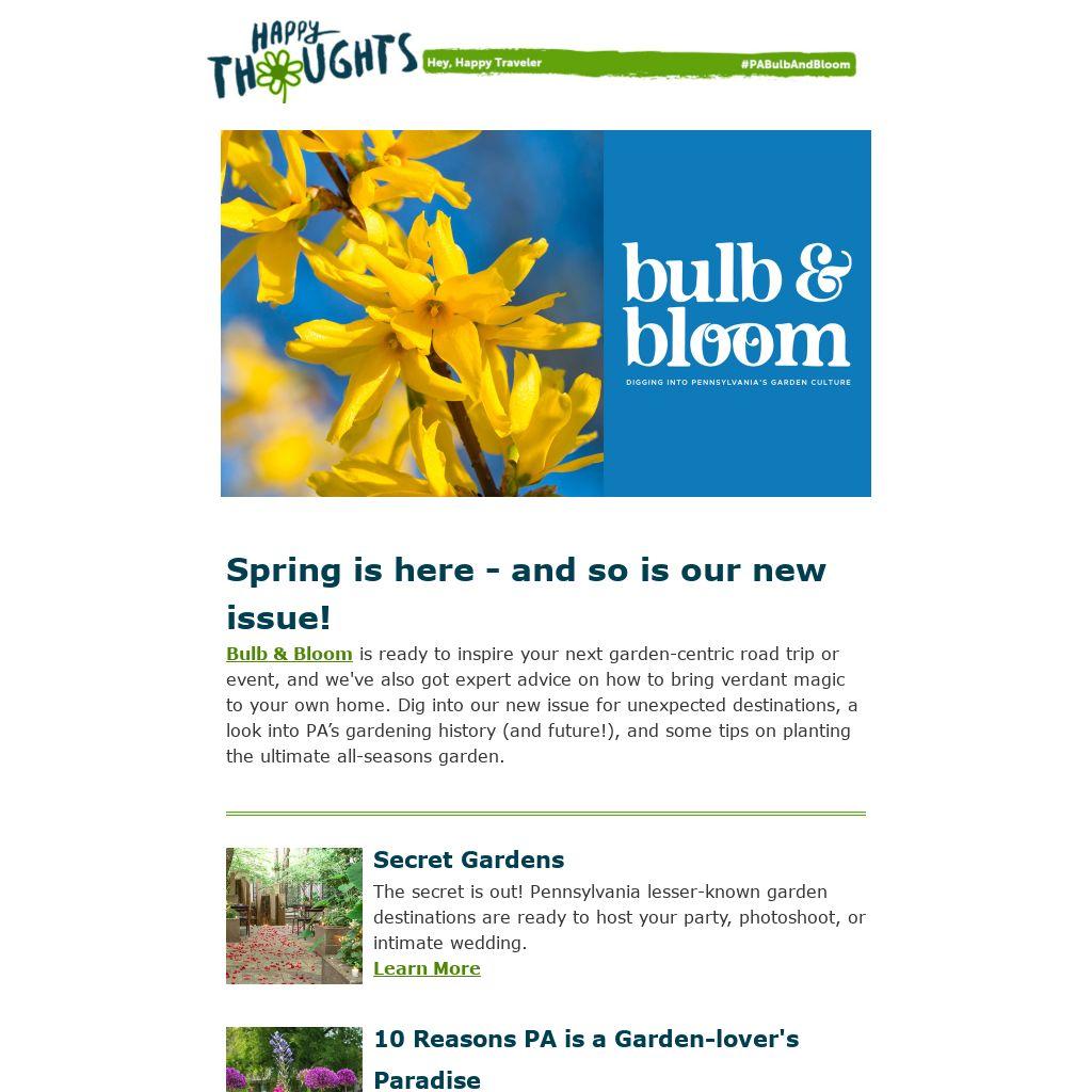 Bulb & Bloom is ready to inspire your next garden-centric road trip or event, and we've also got expert advice on how to bring verdant magic to your own home. Dig into our new issue for unexpected destinations, a look into PA’s gardening history (and future!), and some tips on planting the ultimate all-seasons garden.