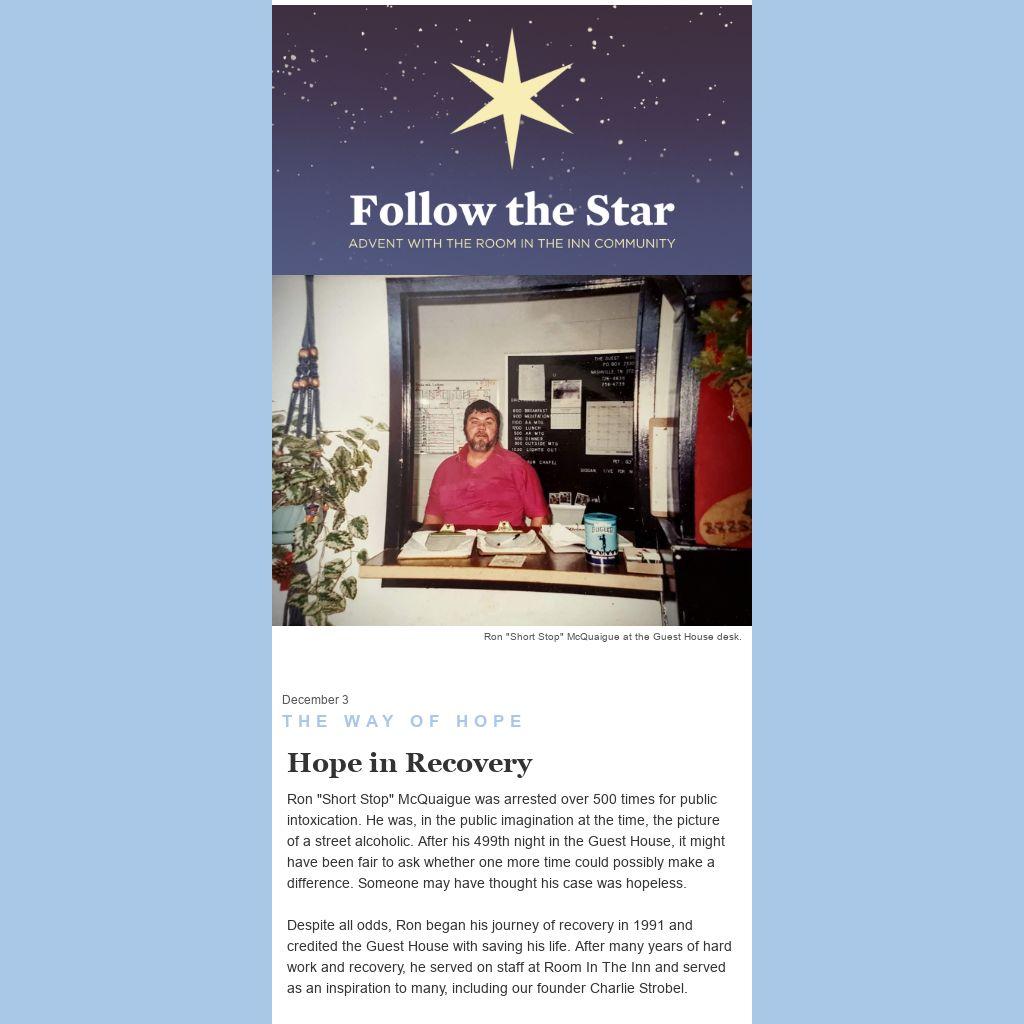 At one point, it seemed like Ron's journey may have ended in despair. Because of Ron's perseverance and those in his life who refused to give up hope, he made a difference not only in his own life, but in the lives of hundreds of others he encountered. Through his own remarkable journey of recovery and his incredible compassion, he exemplified the spirit of Room In The Inn.