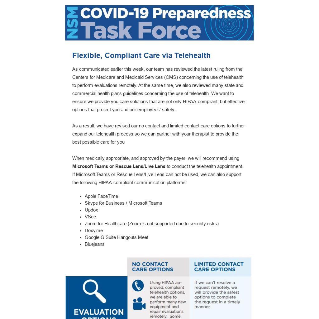 If medically appropriate, and if the payer has approved, collectively, you, your Therapist and NSM Assistive Technology Professional (ATP) will decide if the evaluation will occur in-person with the Therapist, in-person with the ATP, or if all parties will be remote.