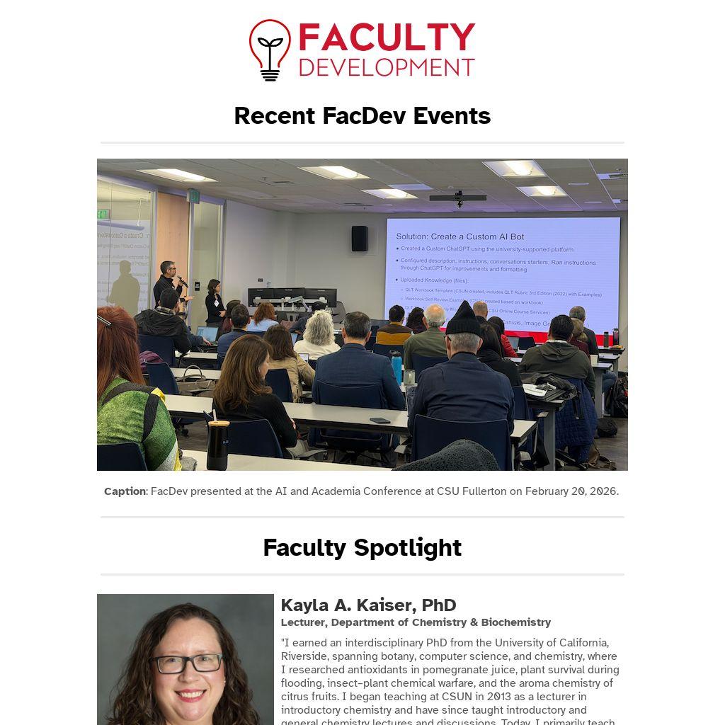 To add your profile to the FacDev newsletter, please email us at facdev@csun.edu