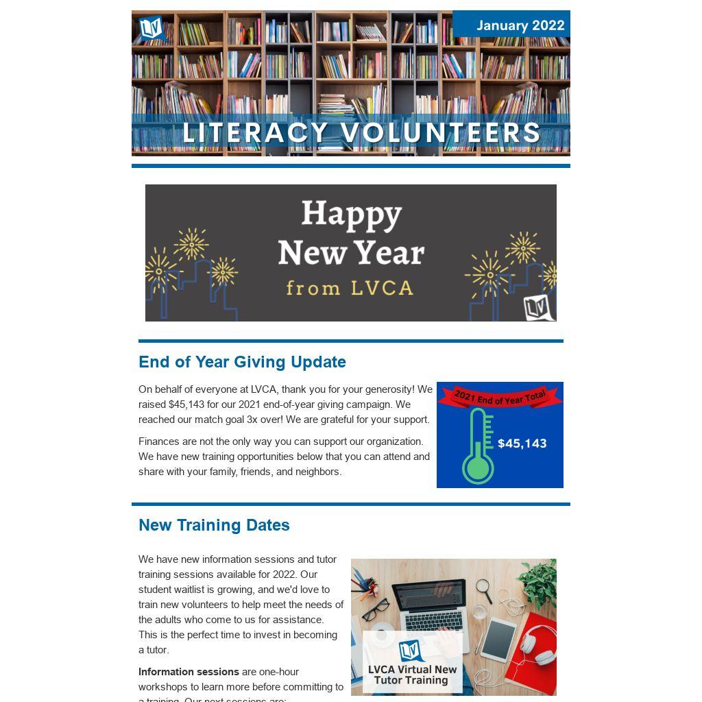 On behalf of everyone at LVCA, thank you for your generosity! We raised $45,143 for our 2021 end-of-year giving campaign. We reached our match goal 3x over! We are grateful for your support.