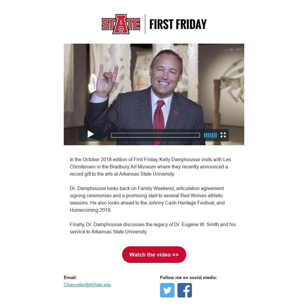 Dr. Damphousse looks back on Family Weekend, articulation agreement signing ceremonies and a promising start to several Red Wolves athletic seasons. He also looks ahead to the Johnny Cash Heritage Festival, and Homecoming 2018.
