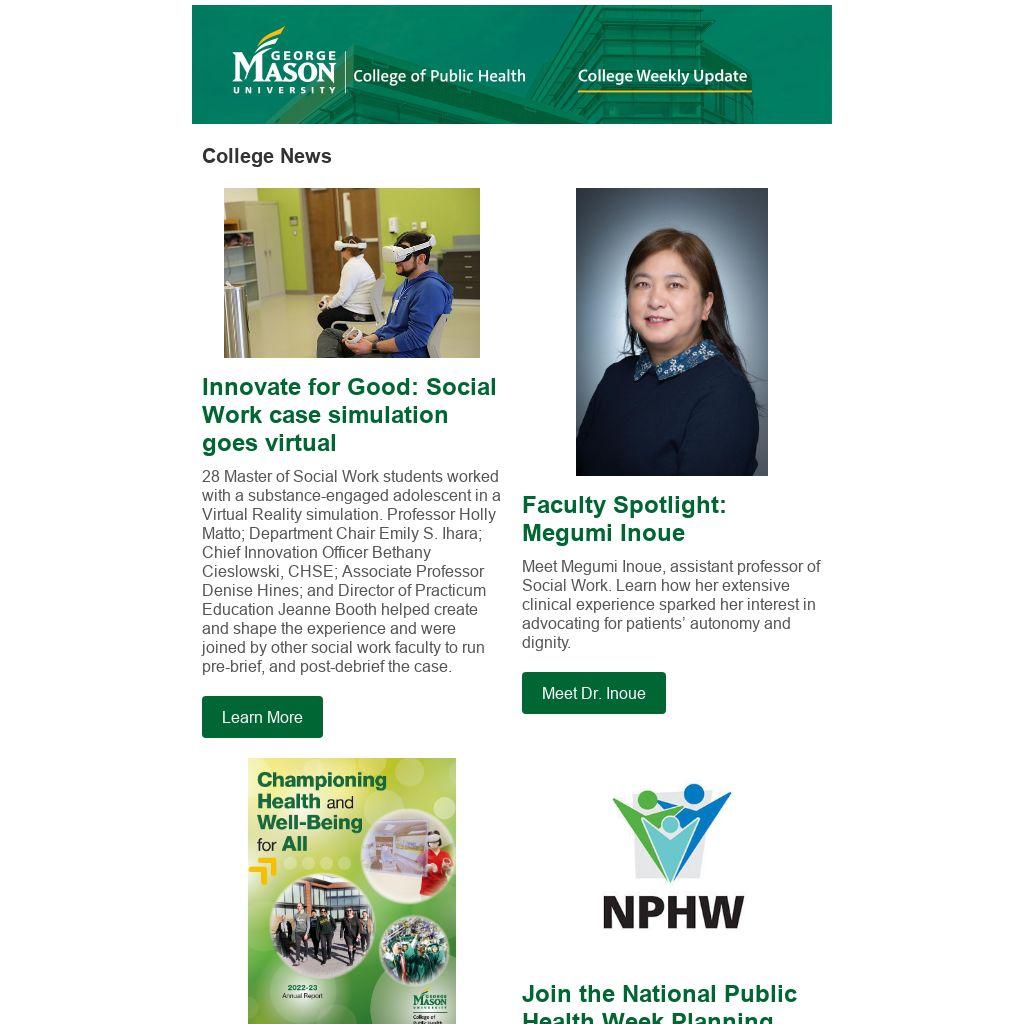 NPHW (April 1-7) is right around the corner and planning is underway for an engaging, interdisciplinary week of activities. If you would like to join the planning committee or have ideas you’d like to share with the committee, please email Michelle Thompson at mthomp7@gmu.edu. We look forward to celebrating NPHW with the community.