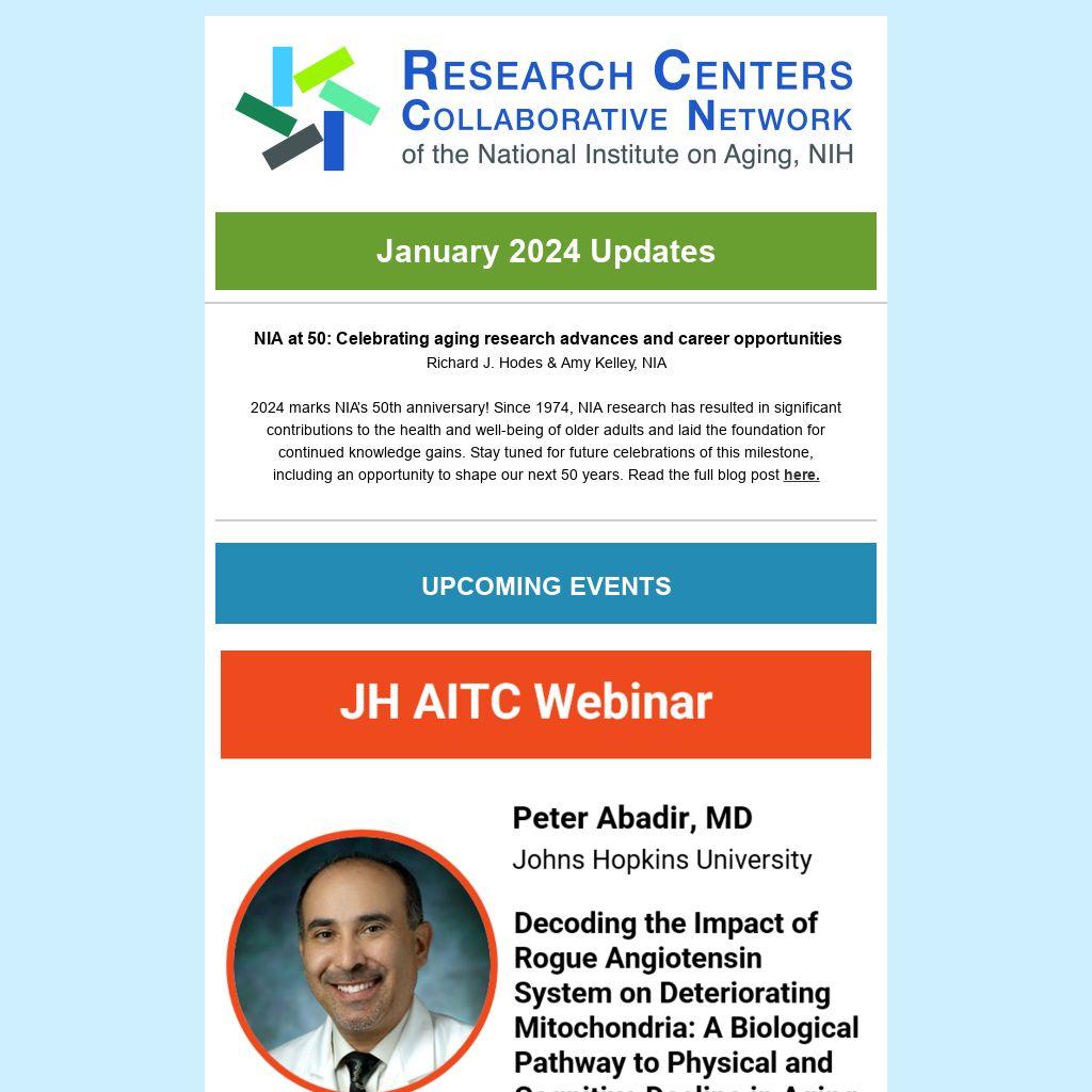 2024 marks NIA’s 50th anniversary! Since 1974, NIA research has resulted in significant contributions to the health and well-being of older adults and laid the foundation for continued knowledge gains. Stay tuned for future celebrations of this milestone, including an opportunity to shape our next 50 years. Read the full blog post here.