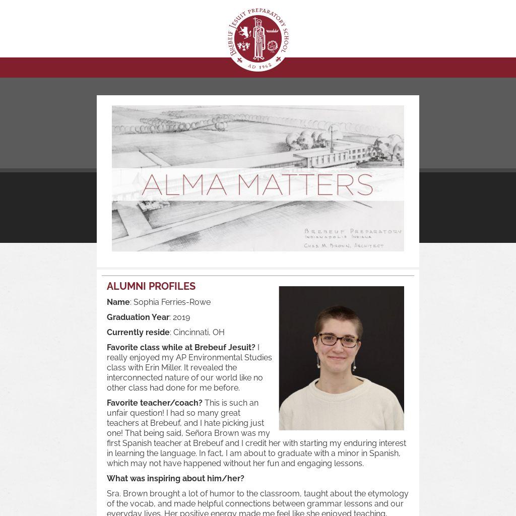 Interested in talking about your career with students? Reach out to Bree Ballard, Director of Alumni Relations at bballard@brebeuf.org or fill out this form by Friday, September 13!