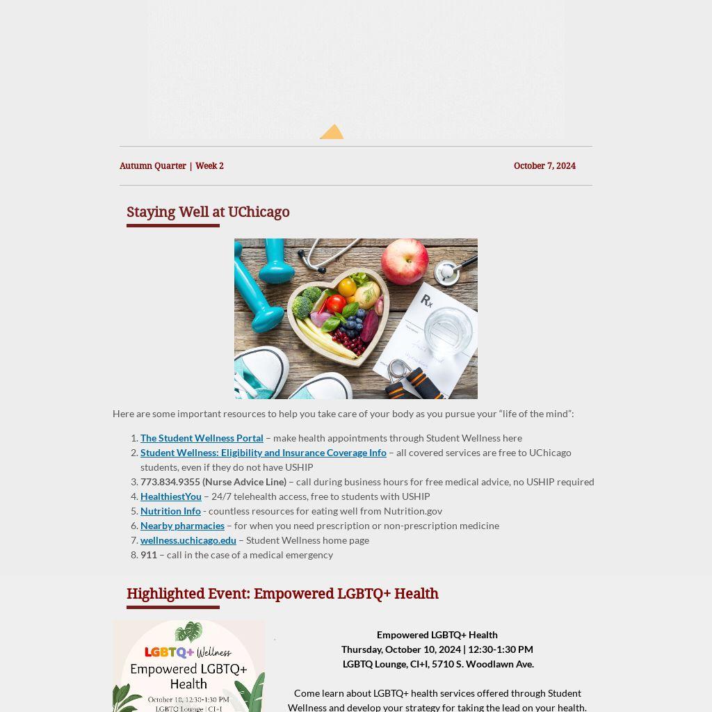 Come learn about LGBTQ+ health services offered through Student Wellness and develop your strategy for taking the lead on your health. Topics include preventive health, sexual health, gender affirming care, mental health, and more. Providers will be available to share information and answer questions in a conversational setting. Light refreshments provided. Register here!