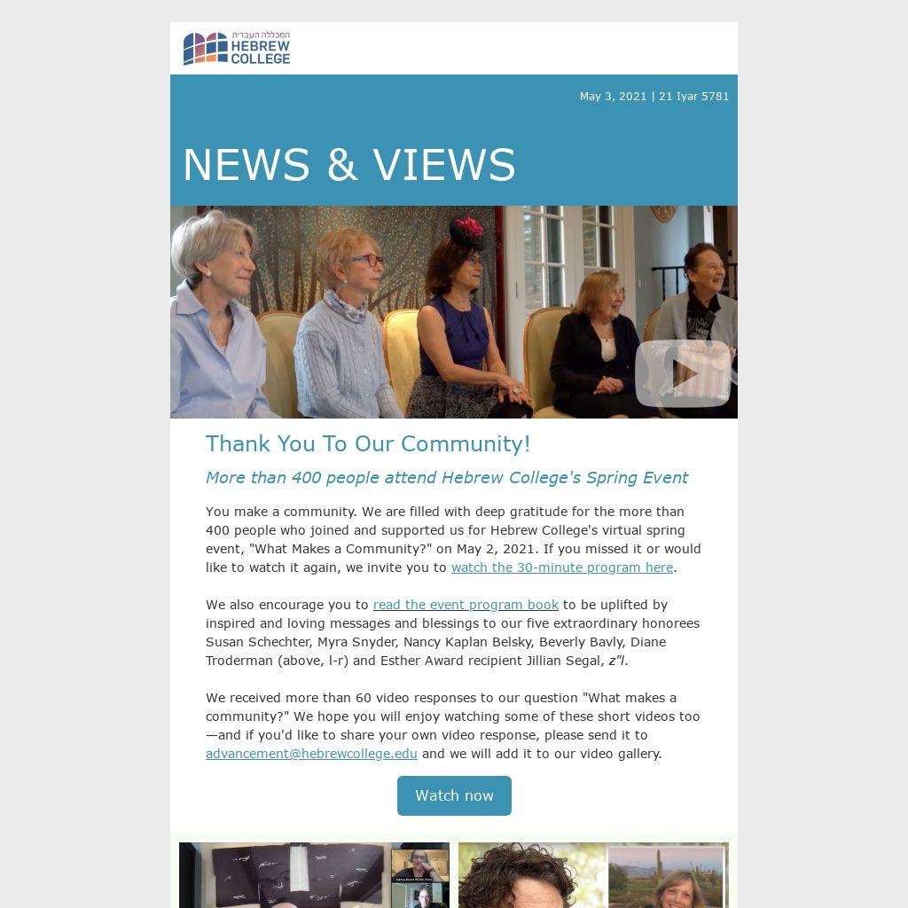 "Mazel Tov to the honorees and Hebrew College. What a beautiful celebration and way to be together in community."