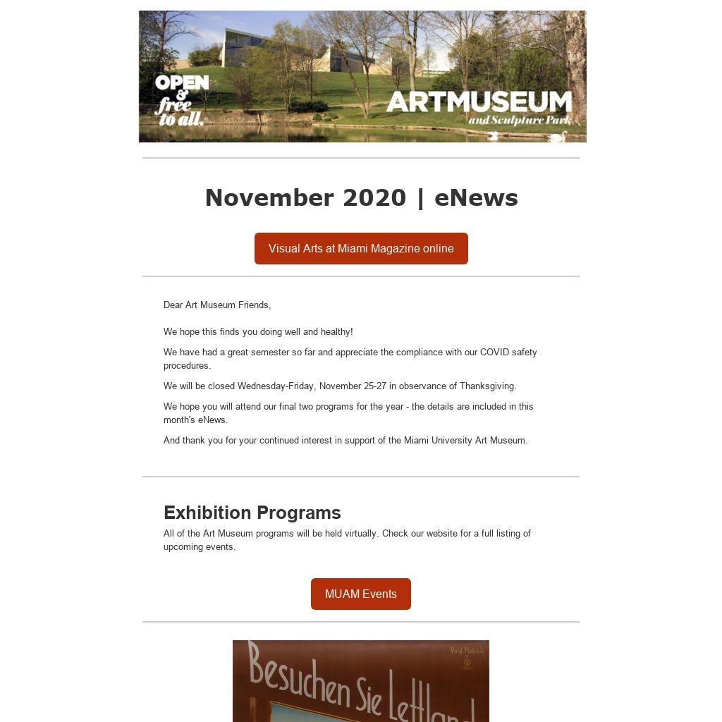 And thank you for your continued interest in support of the Miami University Art Museum.