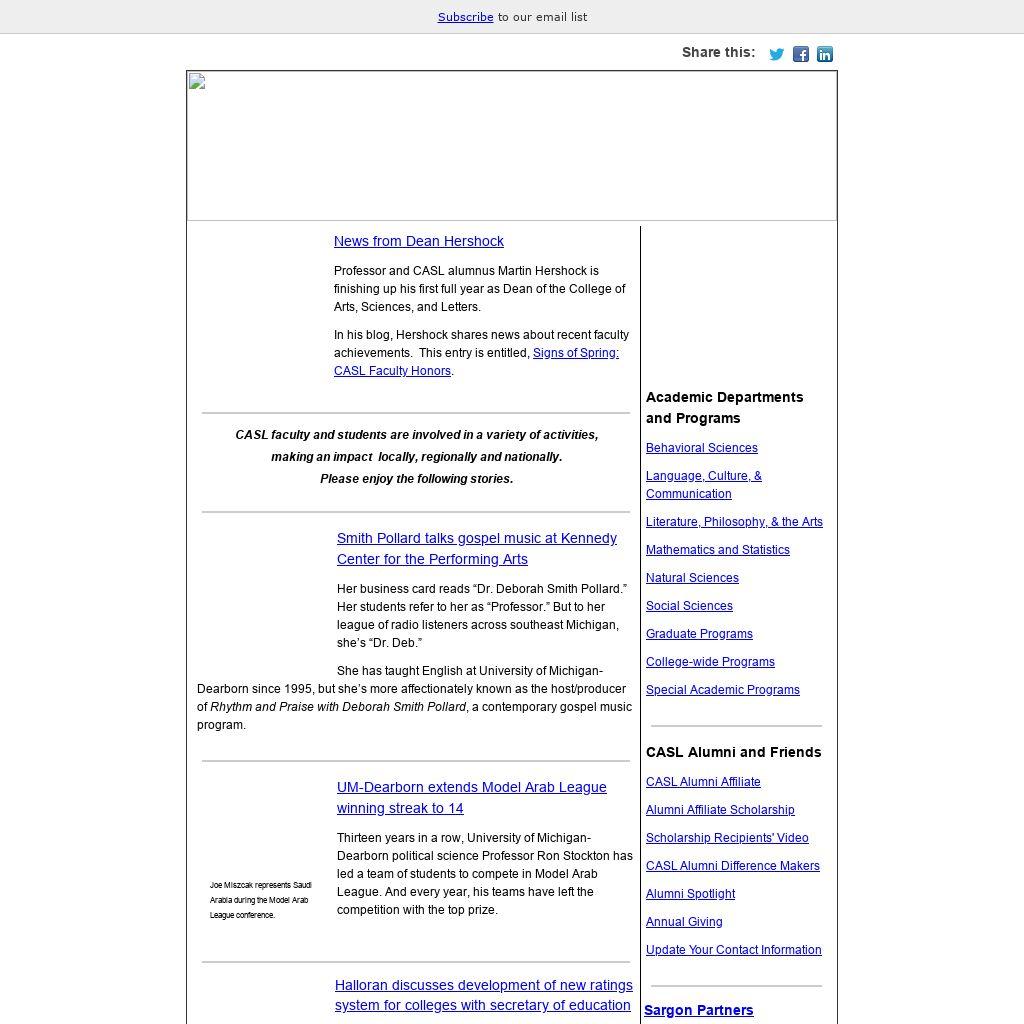 "A View from the CASL" is a quarterly e-newsletter for CASL alumni.