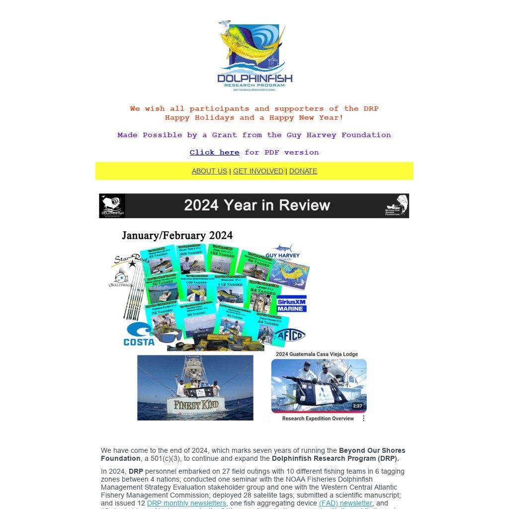 We have come to the end of 2024, which marks seven years of running the Beyond Our Shores Foundation, a 501(c)(3), to continue and expand the Dolphinfish Research Program (DRP).