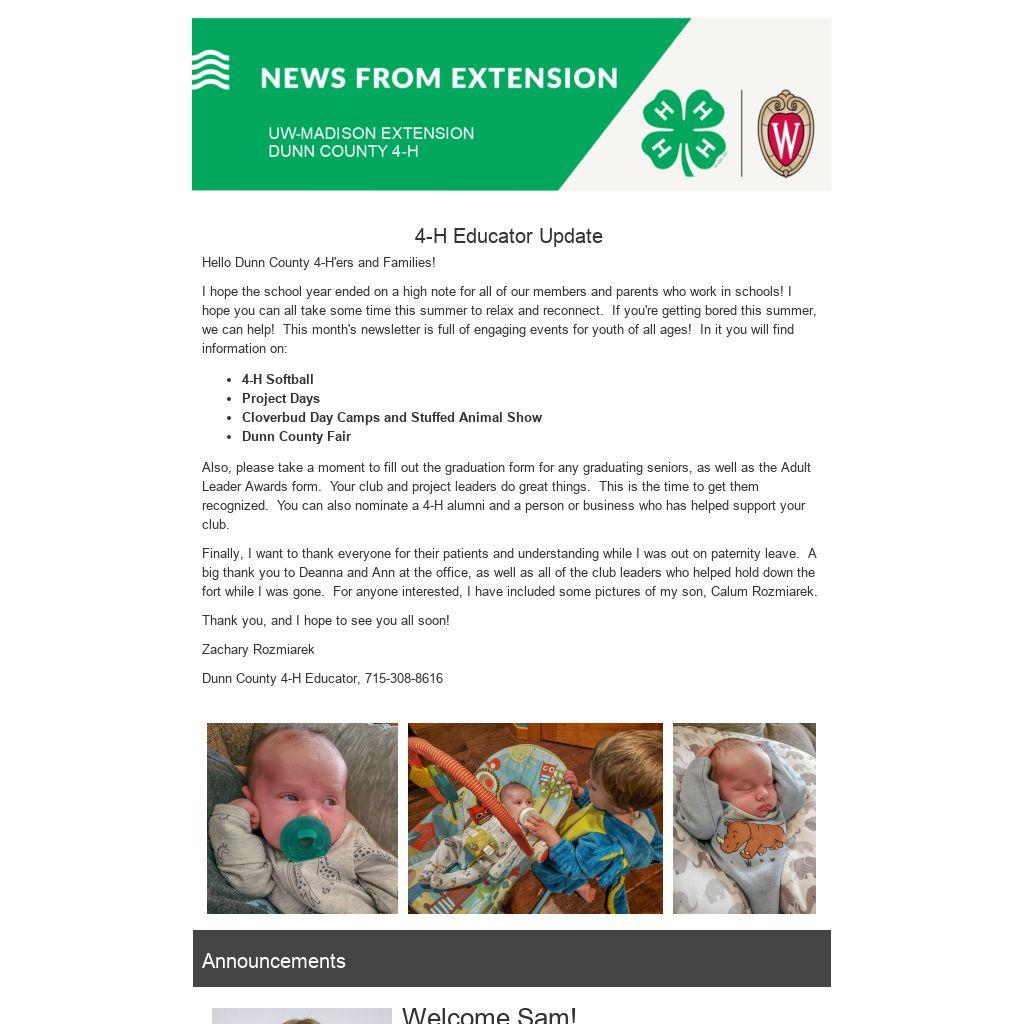 4-H Educator Update Hello Dunn County 4-H'ers and Families!