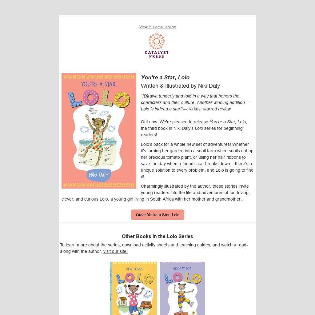 Out now: We're pleased to release You're a Star, Lolo, the third book in Niki Daly's Lolo series for beginning readers!