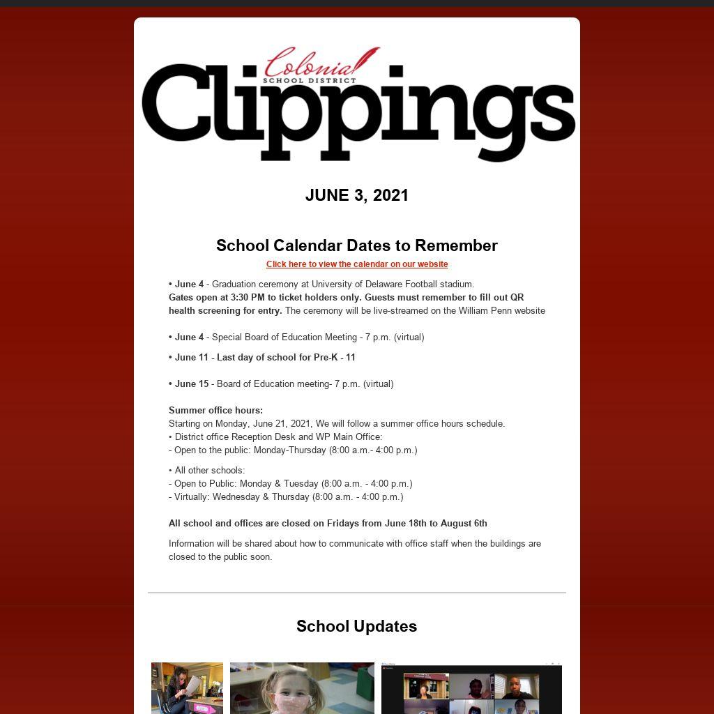 • June 4 - Special Board of Education Meeting - 7 p.m. (virtual)