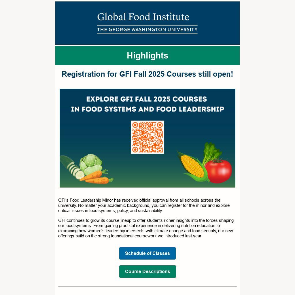 We want to lift up your work and share information about events, opportunities to collaborate or whatever you think is important to share. Email us at globalfoodinstitute@gwu.edu.