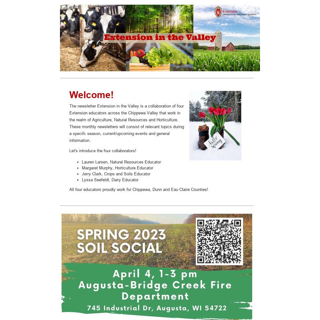 Welcome!The newsletter Extension in the Valley is a collaboration of four Extension educators across the Chippewa Valley that work in the realm of Agriculture, Natural Resources and Horticulture. These monthly newsletters will consist of relevant topics during a specifc season, current/upcoming events and general information. Let's introduce the four collaborators! - Lauren Larsen, Natural Resources Educator