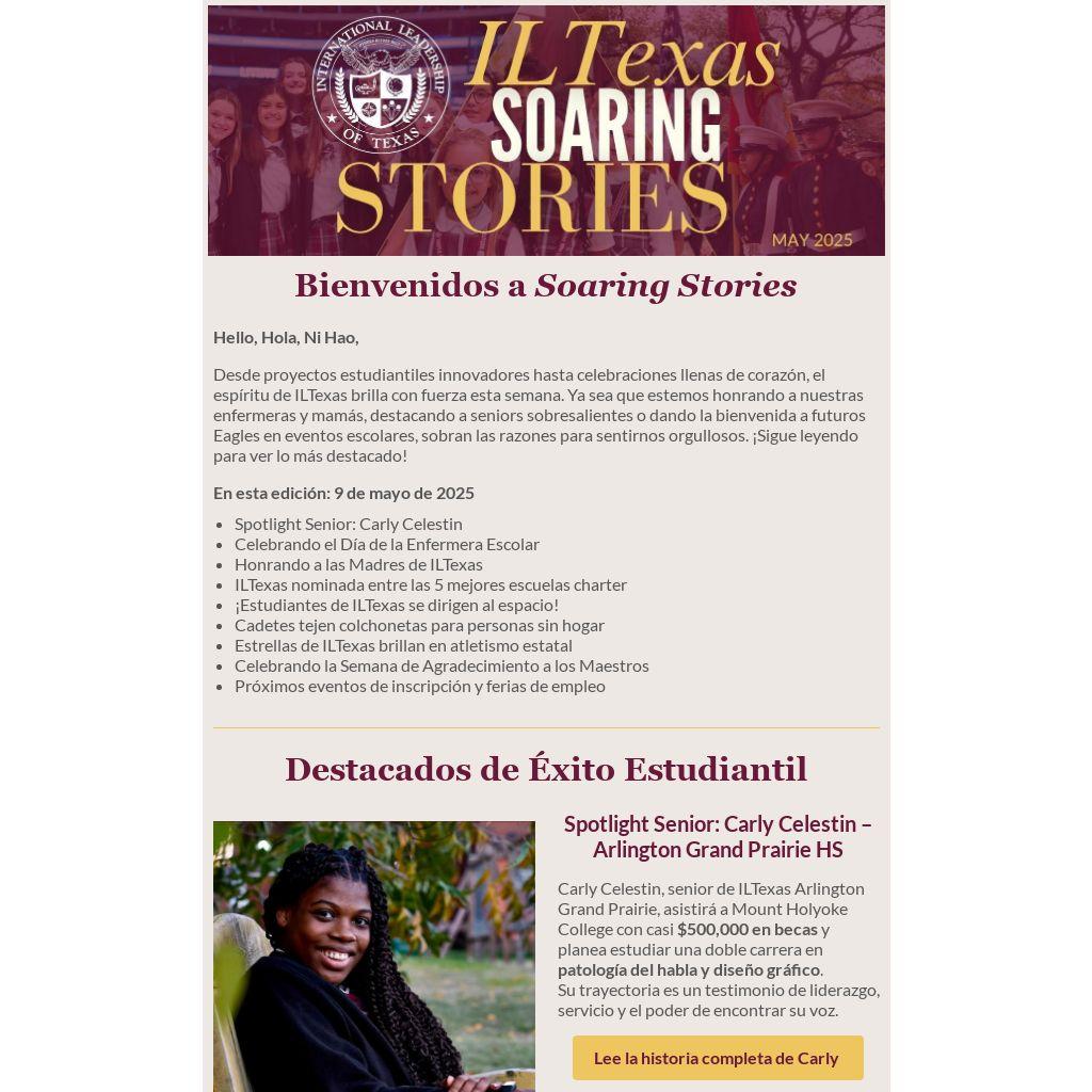 Desde proyectos estudiantiles innovadores hasta celebraciones llenas de corazón, el espíritu de ILTexas brilla con fuerza esta semana. Ya sea que estemos honrando a nuestras enfermeras y mamás, destacando a seniors sobresalientes o dando la bienvenida a futuros Eagles en eventos escolares, sobran las razones para sentirnos orgullosos. ¡Sigue leyendo para ver lo más destacado!