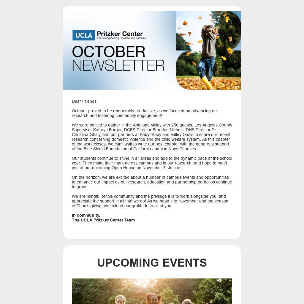 You’re invited to an Open House at the UCLA Pritzker Center! Join us for an exciting morning of community and collaboration. Tour our Westwood office, engage with our faculty, staff, and students, and learn more about our research from our team. Whether you’re curious about the latest in child welfare or looking to foster campus and community partnerships, there’s something for everyone. Don't miss out on this unique opportunity to connect with us at the UCLA Pritzker Center!