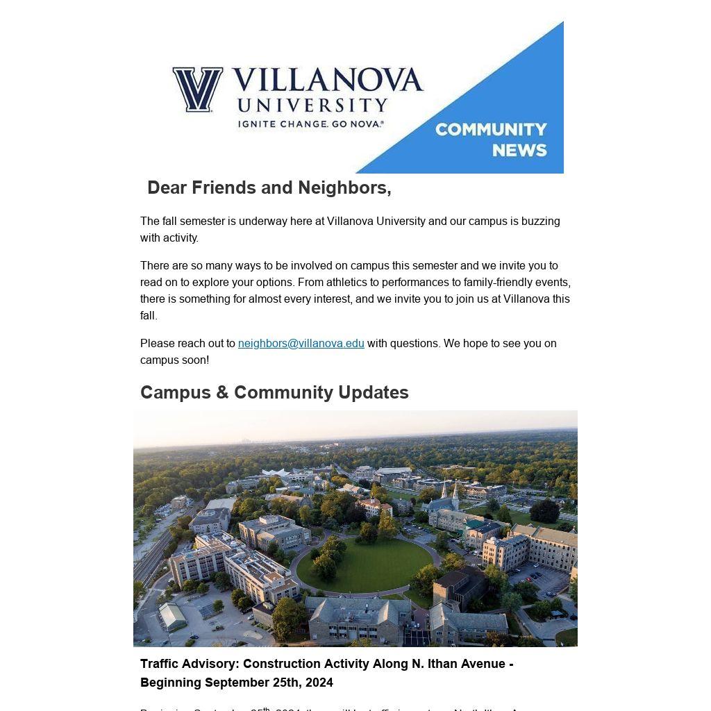 We thank you for your patience as we work to improve our on-campus experience. Please contact neighbors@villanova.edu with questions.