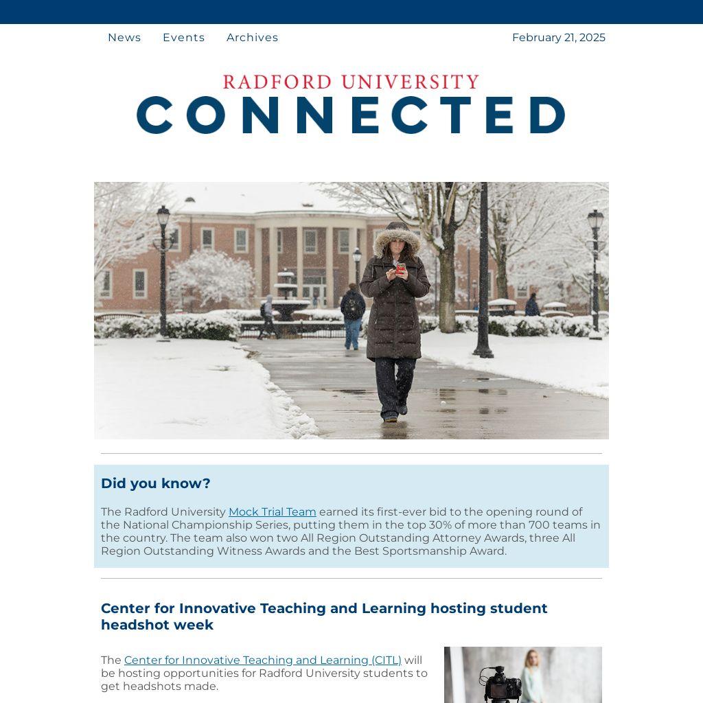 The Center for Innovative Teaching and Learning (CITL) will be hosting opportunities for Radford University students to get headshots made.