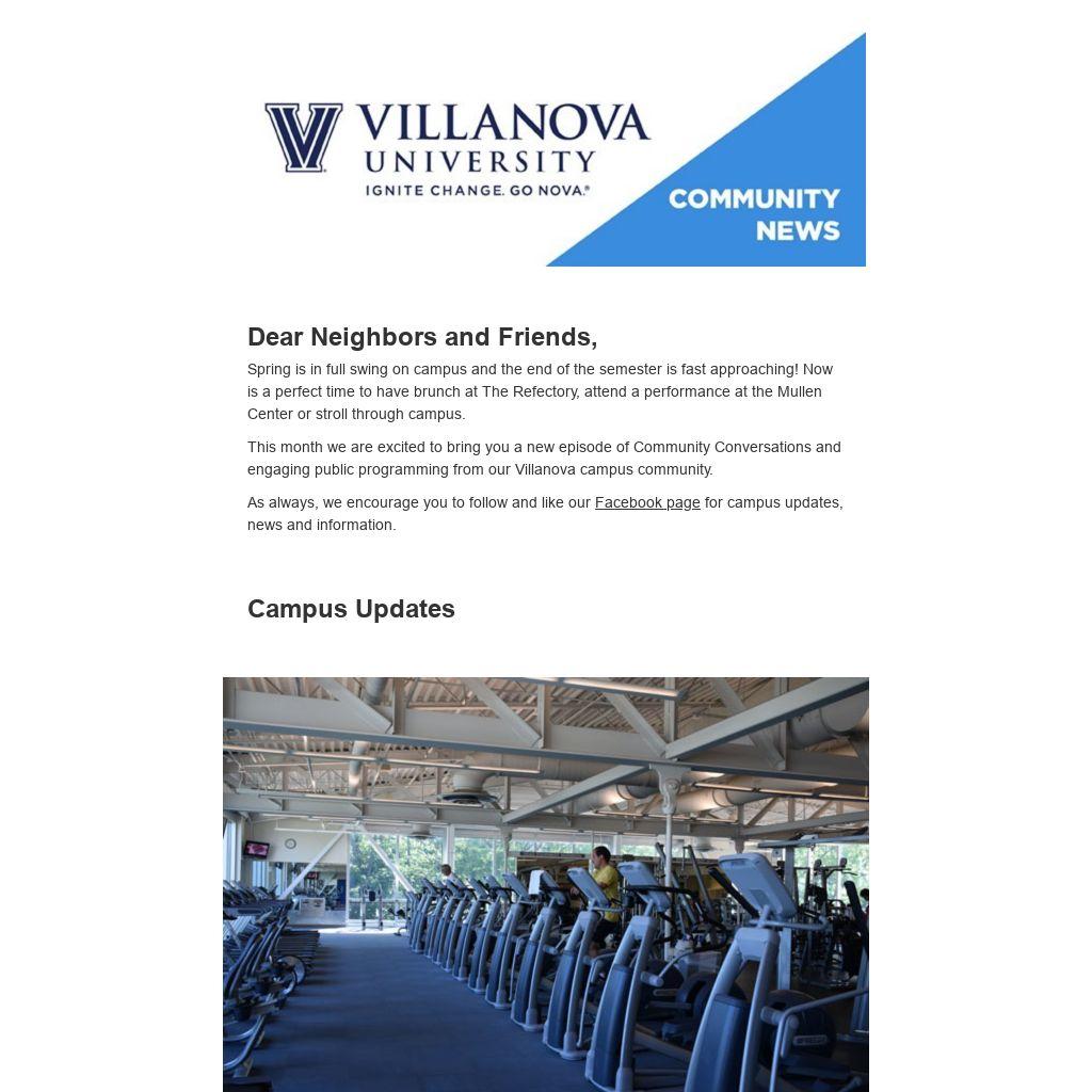 Coming to campus? Know where to go using our Campus Map. Villanova recommends that visitors to campus wear a mask while indoors.