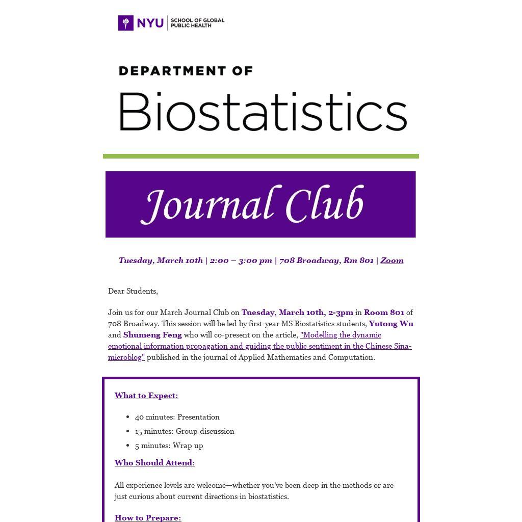 All experience levels are welcome—whether you’ve been deep in the methods or are just curious about current directions in biostatistics.