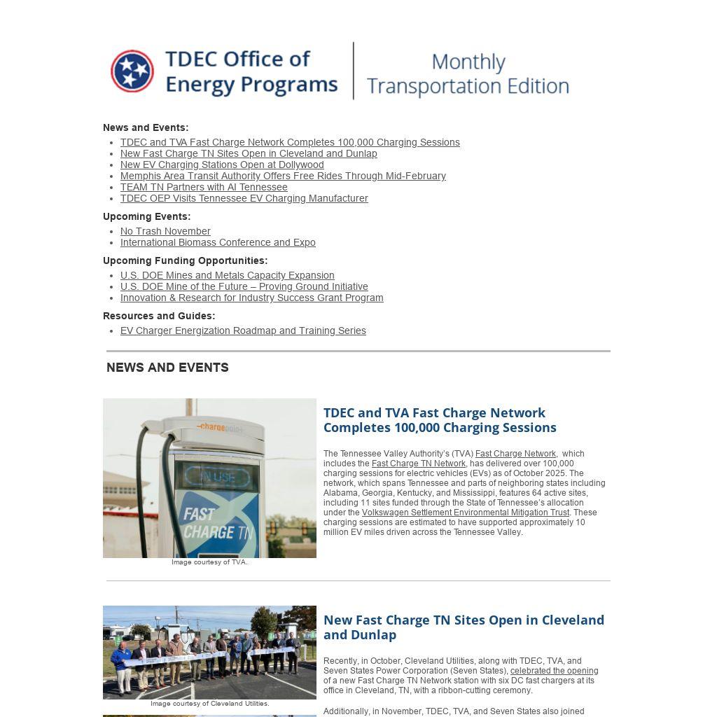 | | TDEC and TVA Fast Charge Network Completes 100,000 Charging Sessions |