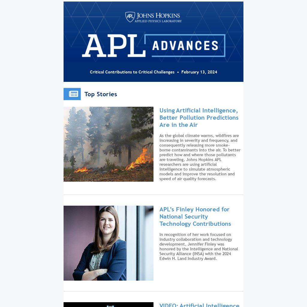 As the global climate warms, wildfires are increasing in severity and frequency, and consequently releasing more smoke-borne contaminants into the air. To better predict how and where those pollutants are traveling, Johns Hopkins APL researchers are using artificial intelligence to simulate atmospheric models and improve the resolution and speed of air quality forecasts.